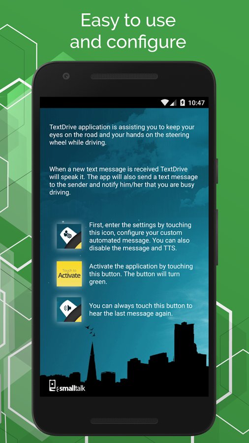 No Texting While Driving Pro - Driving is a very dangerous thing, and in today s world the drivers are often distracted by their mobile devices, and thus provoke a dangerous situation. This app aims to solve this problem once and for all. It will not only help them to accept calls, but will even help to read the SMS, and mail. All you need is to properly configure the app and activate it while driving, so the message that comes on your phone will automatically read out loud.