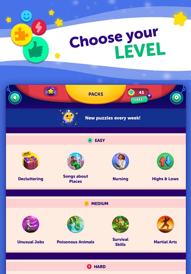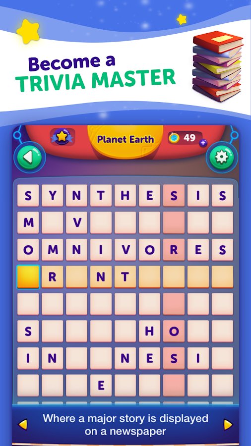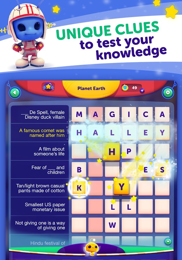 CodyCross – Crossword – puzzle game for Android where you will crossword puzzles. In this game you will help a cute alien, to learn more about our planet. A spaceship of alien crashed on our planet and now he needs to study the Earth. Travel the vast expanses of the Earth and move through space and time, learning something new. Answer the questions proposed by the game, which will have different themes and write the answers in the designated boxes. Enlist the help of tips and bonuses in difficult situations and discover new worlds and themes.