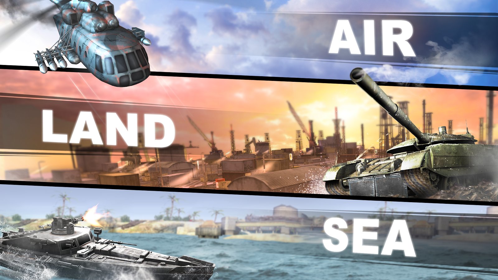 Recently of multiplayer action increasingly justified on mobile platforms, of course most of them are some analogues of such games as Counter-Strike or variations on the popular theme of WoT. However, there are other approaches to this area, so the Studio Game developer Alliance released a game called Massive Warfare in which you will have the opportunity to compete online while using various military equipment and battles take place on land, sea and in the air, which will allow you together with the team to use different tactics and solutions. Of course the game features a development system and leveling, as well as the possibility of creating clans.