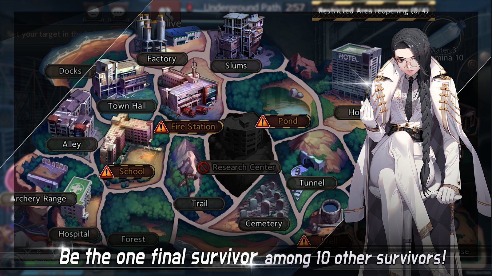 a Black Survival In this buhr you find yourself on a remote island away from all civilization. On this island a small group of people will fight for their lives! Members of this game can unite in a group to look for different materials to create weapons and fight against each other. But after finishing game all participants come to life again, though don t remember the last game...And this process is constantly repeated. What are they fighting for? And who are these people in white coats who watch their fights?