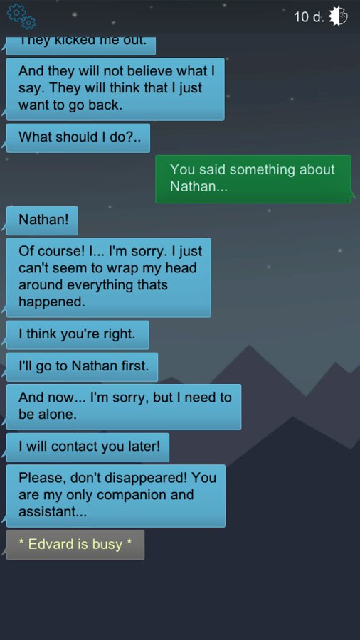 Outcast s Journey - a Text adventure - in this game you re lucky to meet the mysterious inventor from another dimension, who had no time to test your fate and to overcome various obstacles.No time to think and reason, act must quickly. The whole world is against you. You lead people, defending them, engaging in battle with the enemy. Excellent sound, a blend of two genres, the opportunity to choose the ending, the game mode offline - like any gamer who loves dangerous adventures.