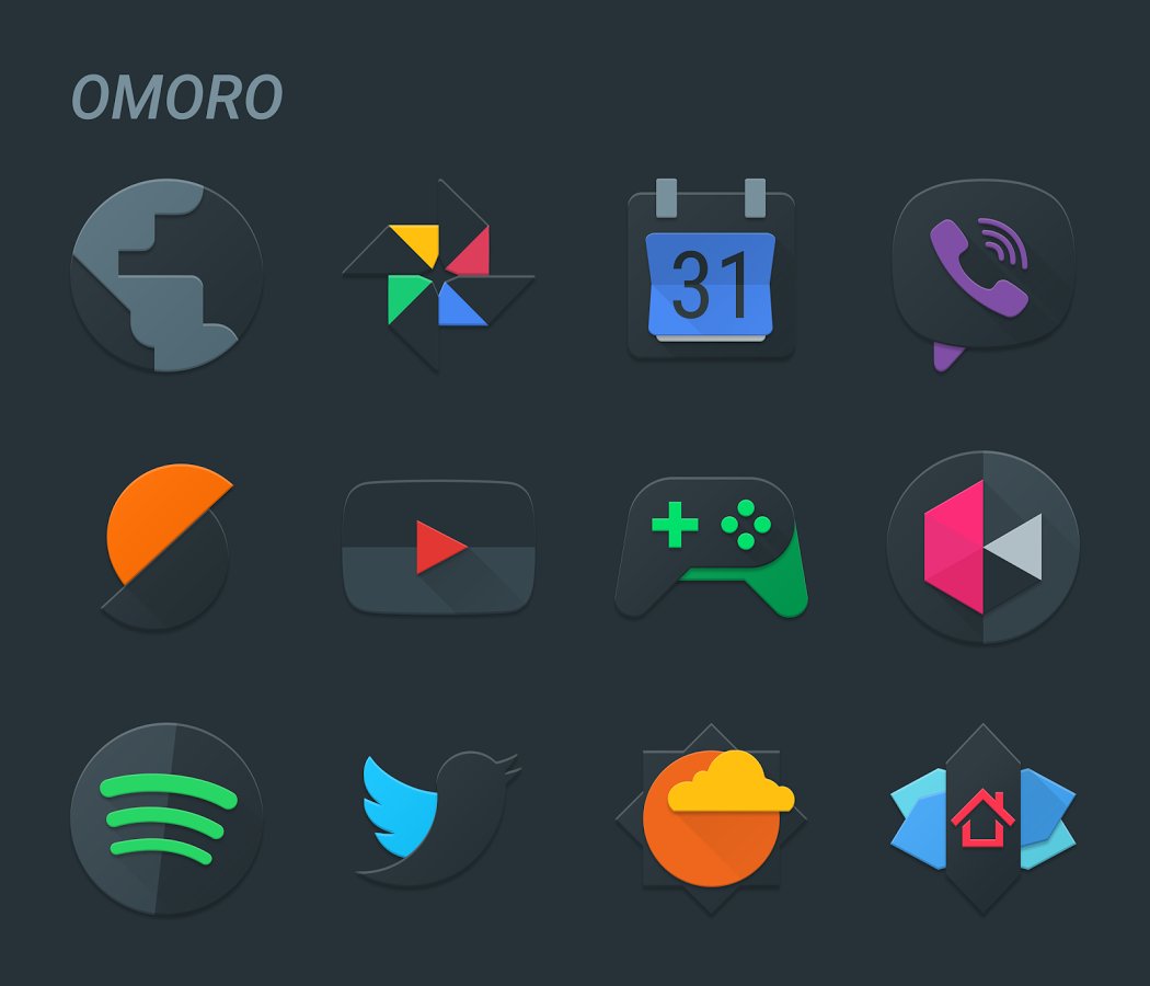 Omoro - Icon Pack - a Great and fun set of icons that will appeal to many users. Here you will find dark and classic icons to suit any taste. In addition, this application is supported on most modern launcher, so you will not have problems with its launch. As a constantly growing stock of icons for your desktop will delight even the most demanding users.