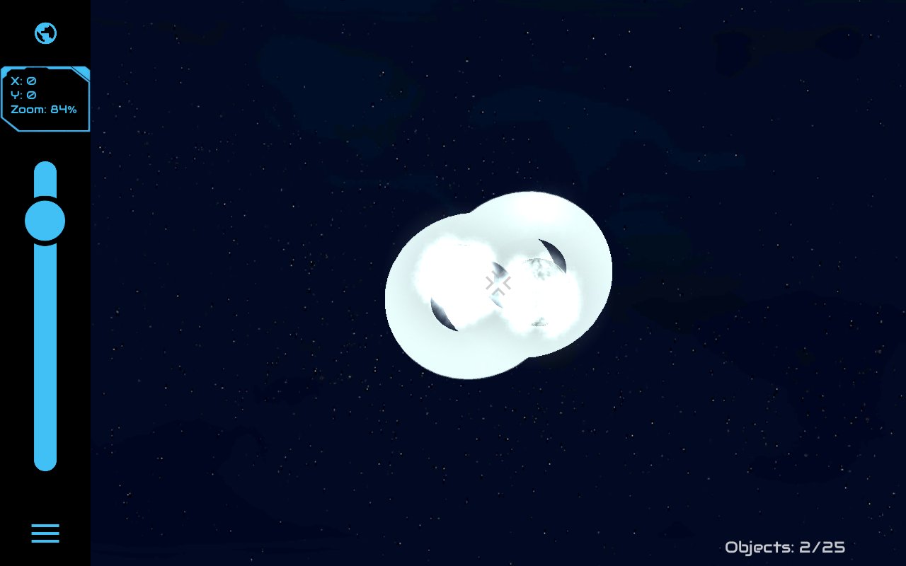 Make Your Solar System – a game for Android where you will create your own solar system. In this game you will have a great opportunity to create their own unique solar system, but this would be not so simple. Create stars and planets and make them stable, to avoid imbalance and the system did not give failure. This game has several game modes. In one of them you will be able to conduct an experiment and randomly create the world, not taking into account their size and not pursuing any goals. In the other mode you will solve challenging puzzles, where one planet has a large mass and can lead to huge explosion. If you are malnourished to create the world, you will be able to destroy them and blow up.