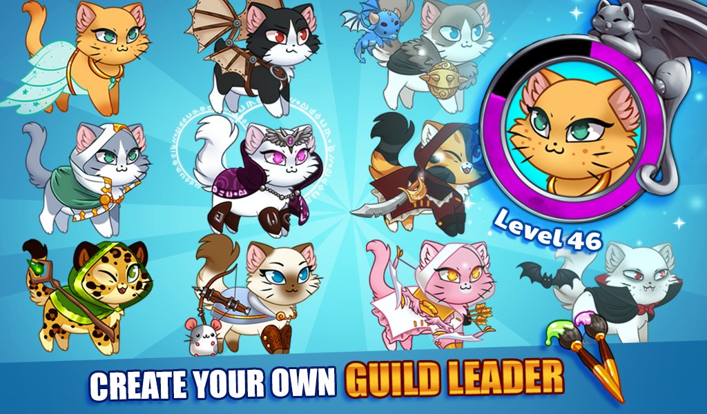 Castle Cats is a great adventure game on Android, where you will control the militant cats. Gather your invincible Guild and fight enemies as a knight of Conan, the Archer Katniss and magician Francis. In this game you will control a cute seals, which alone has decided to defeat the evil Necromorphs. All the game features more than 60 unique and different heroes that you will improve as the game progresses. In your castle you will train, recruit and develop unbeatable tactics. Let your cat and fight numerous enemies who want to enslave the whole world.