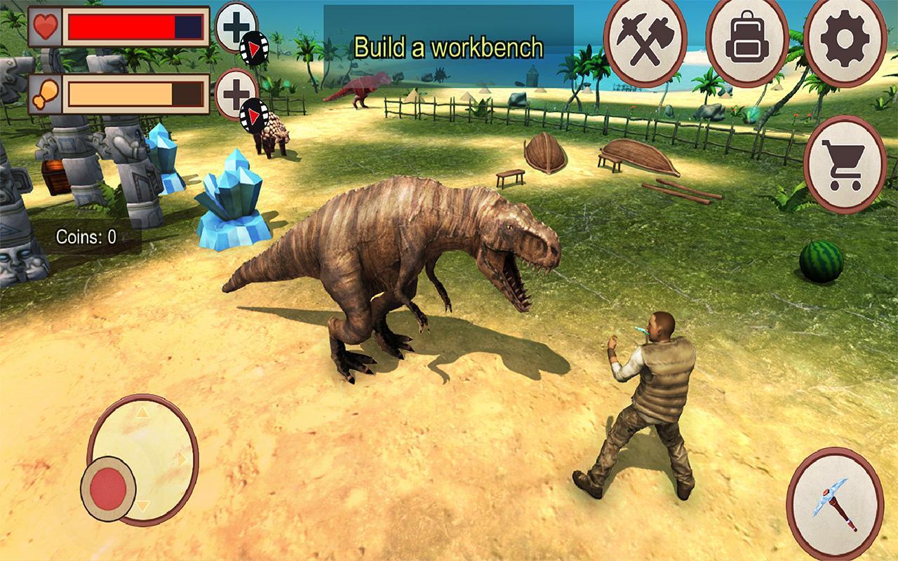 Jurassic Dino Island Survival 3D game for Android where you survive on an island inhabited by huge dinosaurs. Your plane crashed and you are stranded on a deserted island in the middle of the ocean. Your task will be to try to survive on this island and explore it. Move through different locations and use different objects to create weapons. Fight for your life in any way and build his own shelter to protect themselves from monsters. This island will delight you with a variety of dinosaur species, from friendly to dangerous predators. Explore the island and discover all its secrets. Hunt for dinosaurs and create the items you need.