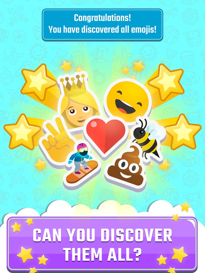 Match The Emoji - Combine and Discover new Emojis! – a game on Android where you will collect variety of Emoji. In this game your main task is to collect all the human emotions in an amazing and recognizable images. Different Emoji symbolizes a person s emotions and you have to guess correctly to his collection. Tap the screen of your phone or tablet and look for the same emotions, making one unique Emoji. Discover new types of emotions and enjoy the exciting gameplay. In total, the game features over 200 emojis, collect them all and enjoy nice graphics.
