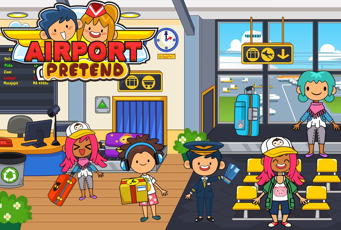My Pretend Airport - Kids Travel Town – a great game for preschool children where they will learn the airport. In this game your child will be able to collect his Luggage and to explore the various airport terminals, shopping and buying drinks before the flight. Buy a variety of Souvenirs and visit the local cafes and explore the cockpit and scan the Luggage for the presence of foreign objects. A fun game for kids where they will find many interesting things. Go through all the missions and complete all assignments and study the structure of the airport.