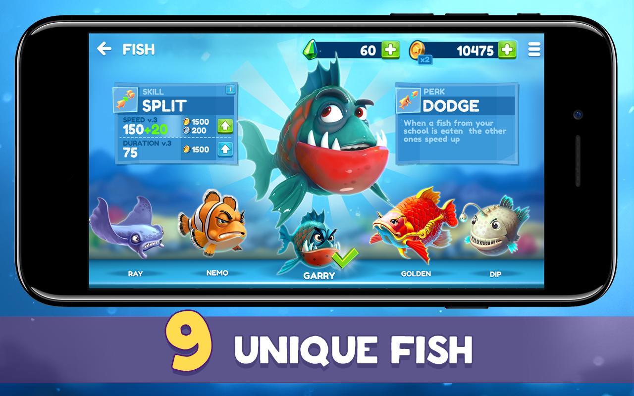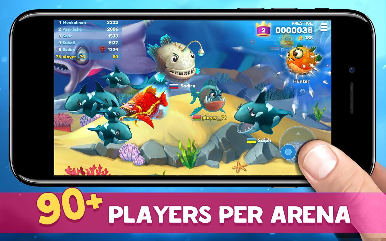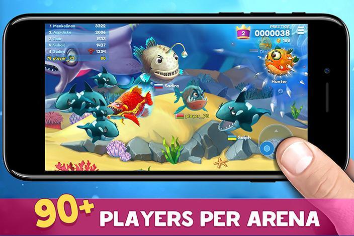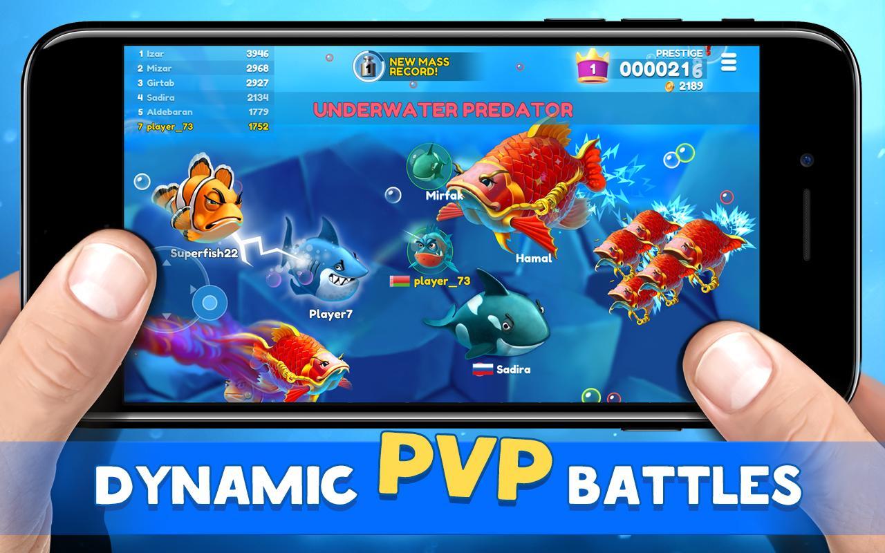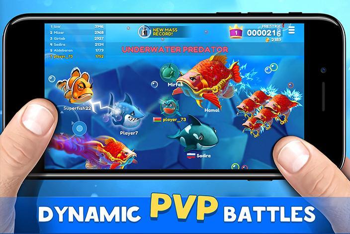 Fish Now: Online io Game & PvP – Battle – take control of one of the game fish and make it the strongest in the ocean. In this game you will find yourself in the depths of the ocean, where swim a variety of fish and your task is to collect a variety of food and bonuses and battle with competitors. Each fish in the game has their own unique skills and abilities that will gradually open in the course of the game. Swim through the vast expanses of the ocean and eat food to increase in size. Fight strong fish and defeat them. Challenge the strongest and become the best, rising higher in the standings.