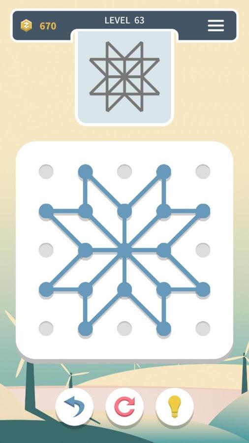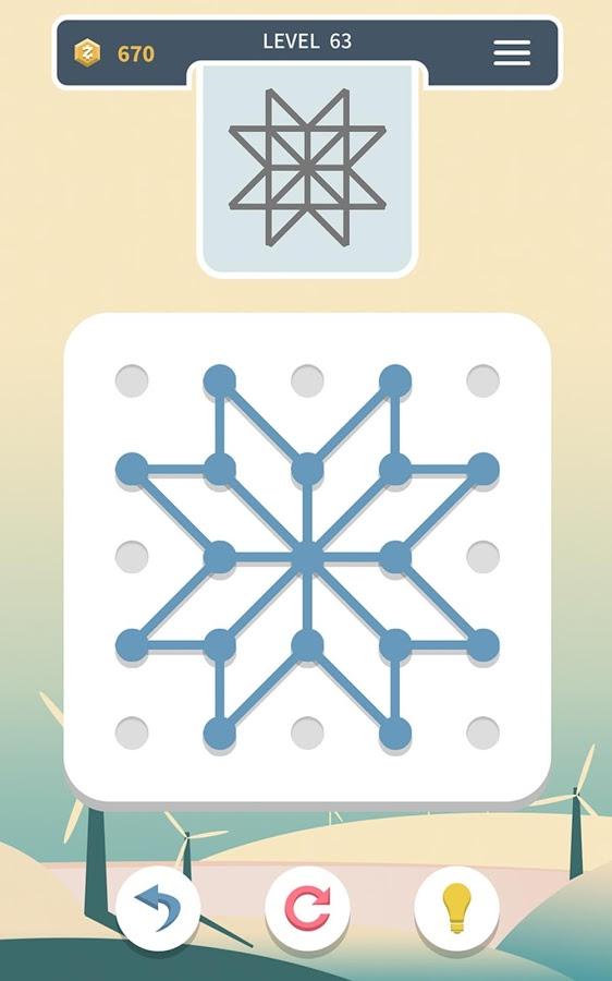 Weave the Line is a fun puzzle game for Android where you will create different shapes. In this game your task will be to create a shape pattern, dragging the line to the point and dividing it into two, thus creating a new line. Repeat all the steps several times and create incredible shapes and patterns that requires your full concentration and attention. Solve challenging puzzles and create the same model. The game features three game modes:
