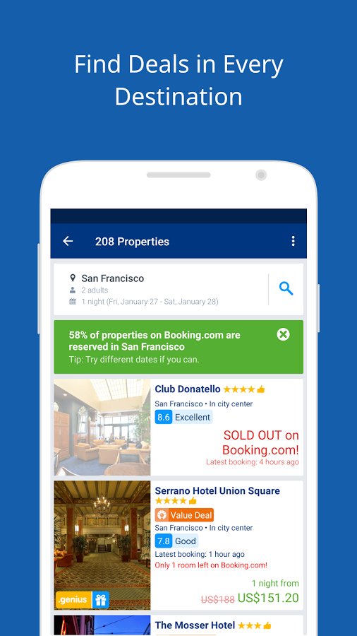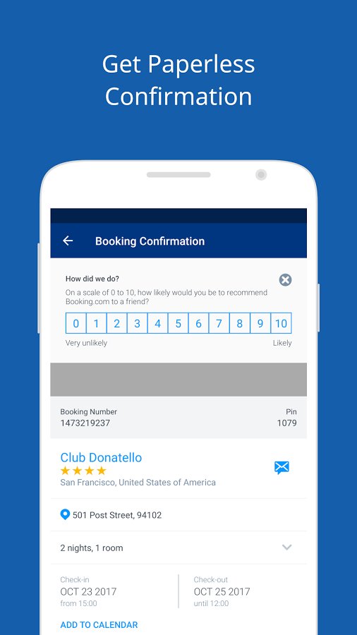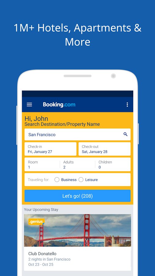 Booking.com Hotels & Vacation Rentals - best app for quick search and booking of hotels, houses and apartments, having a high rating among thousands of users around the world. Don t know where to stay comfortable during the travel or vacation? To your attention more than a million of hotels for every taste, to find that not a problem with custom search, easy filter, including by location. To register a room without prints and maps, there is a possibility of short-notice bookings in one click. The support is available around the clock in multiple languages and creating your own account gives you more opportunities to select the best option for you.