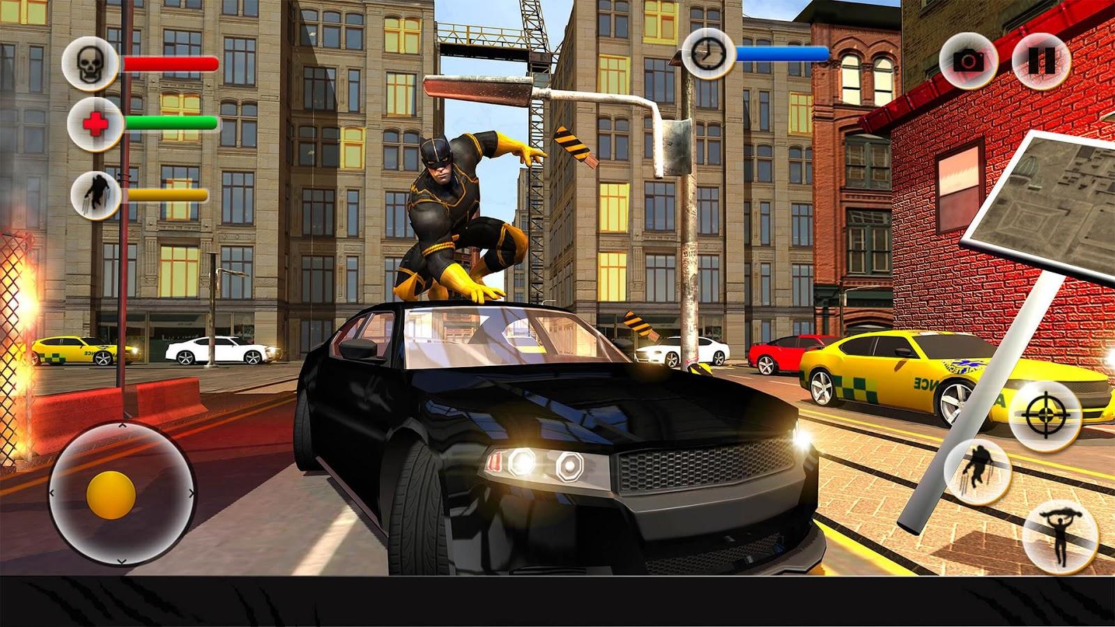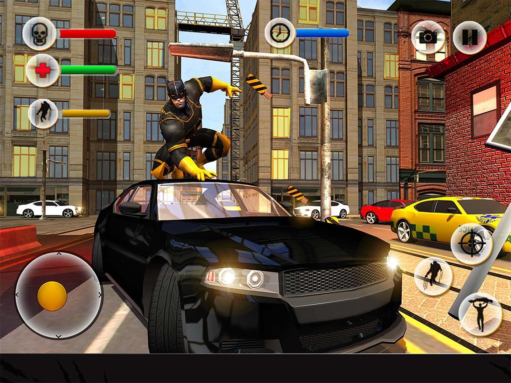 Panther Flying Super Hero City Survival – a game on Android where you will operate a brave super hero and protect the peace of civilians. In this game your task is to move around the city and look for emergency situations and rescue people. Your character in this game has unique abilities, he can fly and move around the buildings with claws. Control your hero and join the battle with numerous enemies and villains to unleash all your skills in martial arts and modern weapons. Stop a Bank robbery, bring people from the burning building and prevent the car accident. Complete all missions of a hero and explore the vast city, looking for a new one.