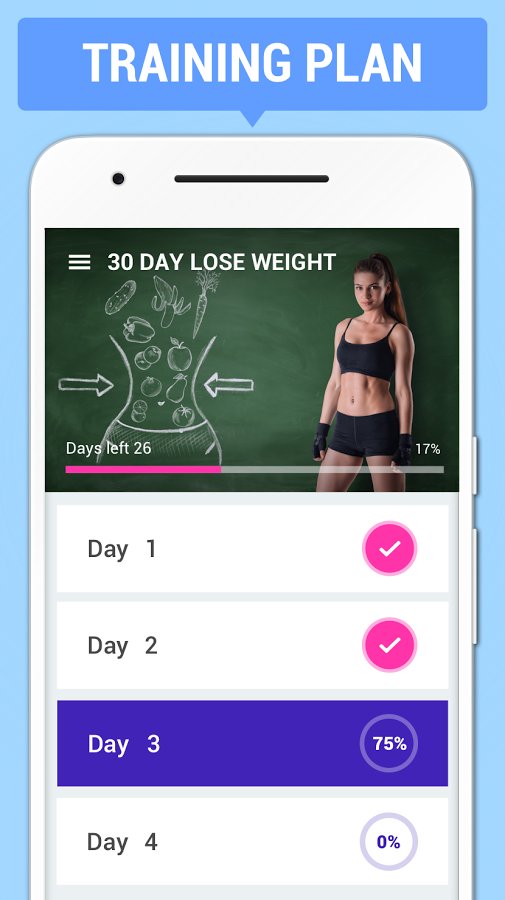 Lose Weight in 30 Days will enable many people who are overweight and seek to lose, to try new exercises and techniques designed for weight loss. It also provides more than 100 different diets for weight loss is safe for health. Especially for newcomers to the app have a special plan for training, consisting of three levels. It contains exercises in the form of video tutorials for abs, arms, legs, shoulders, buttocks, back, which are distributed as intensity. If you perform them correctly, following the instructions, then after a few days you will see the first result. The program also allows you to monitor already spent calories during exercise and show you how many pounds you ve lost for a certain period of time.