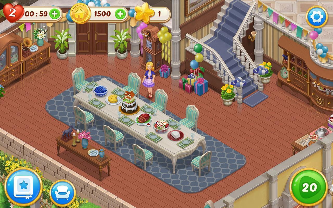 the mansion all sorts of colors and decorations. Chat with cute neighbours and