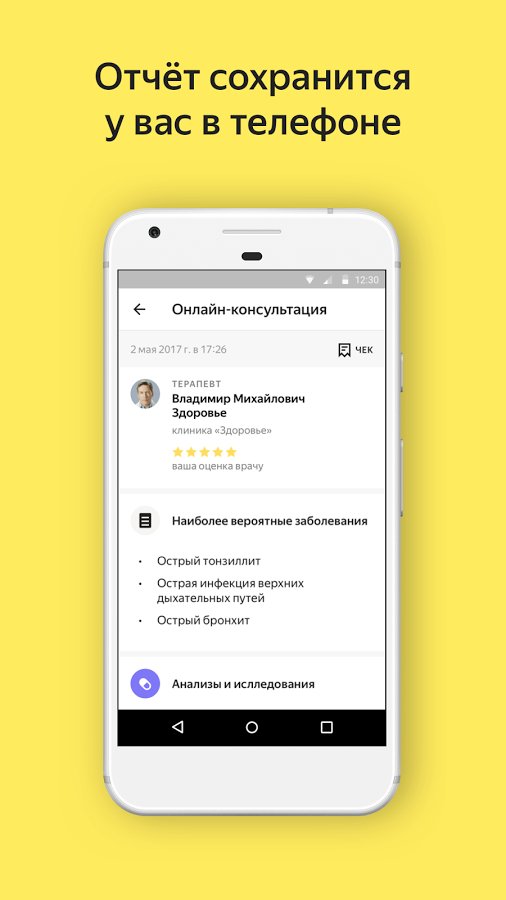 Yandex Health is a unique app that lets You from home get advice of the doctor You are interested in. In Yandex the Health of their really a lot and You will definitely find the one You need. No need to go anywhere and stand in queues. You will receive full results of Your visit to the doctor, including help, maintenance card, obtaining a diagnosis and treatment methods. Of course, the service is paid, but the first consultation Yandex gives You a gift. To do this, enter the promo code from their other applications, for example, the code TRANSPORT .