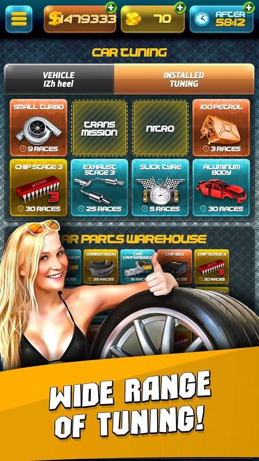 Street Racing, street racing simulator! – racing on Android where you will be able to test your skill a great rider. Start your career, driving domestic cars in the city and achieve incredible results. In addition to your racing skills you will also have to learn how to tune your car, adding parts, and to bargain with the car dealership. Purchase your car at a bargain price and upgrade it in your garage, adding a turbine, sport transmission, making the chip tuning and putting the new rubber. Challenge the strongest players from around the world and drive them on the highways of the city or through the woods. The game will delight players of many different cars from VAZ 2101, to sports supercars. Achieve incredible results in this game and prove to everyone that you are the best racer.
