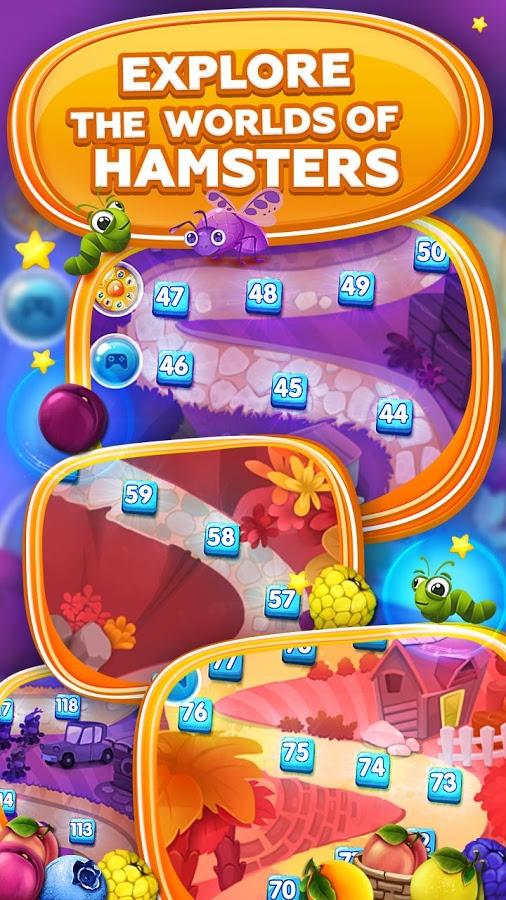 Fruit Hamsters–Hamsters of Farm: Match 3 game – a game on Android where you will find yourself on the farm fun. On this farm grows a variety of fruits and vegetables, and harvested the cute hamsters. Your task will be to help them harvest in the basket, making three or more identical fruit in a row and blow them up. Collect harvest and get additional bonuses that will help you progress through the levels faster. Start your adventure now and enjoy the vivid graphics and numerous missions. Feed the hungry hamsters delicious fruits and vegetables. Play with your friends and achieve incredible results.