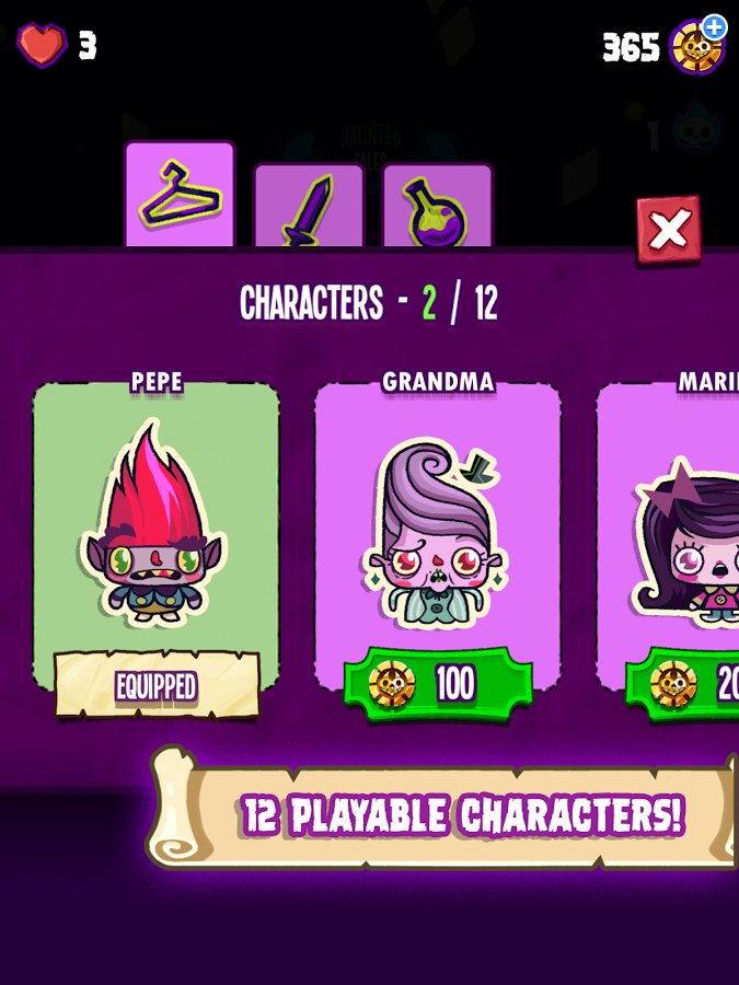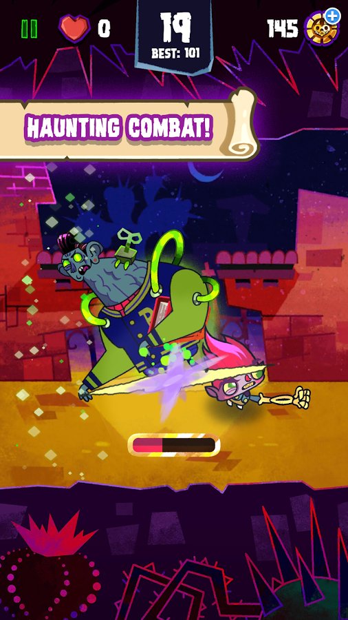 Haunted Tales - The Curse of Skullheart – in this game you will control the main character, who must overcome a chain of dangerous rooms. Try to beat every room as fast as possible and not to stop, otherwise you energy the wave will overtake you. With a single touch of a finger to the screen control your hero and do not let him collide with obstacles. Your hero will move in a straight line and place to go further can only hedges and walls. Avoid traps and collect the unique collection of weapons.