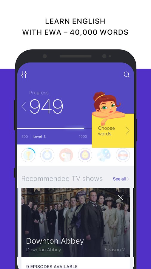 Together with EWA doesn t need to learn words and sentences in English, to sit in boring lectures and classes in learning this language. Here you can quickly learn a new design with the help of watching movies and series, thereby simultaneously having fun. Being not only productive but also interesting, this lesson will bring many benefits and allow you to watch your favorite movies and read books in English in the original. Here the only effective and proven methods of study, daily update of new words, a huge database of popular sayings, timely alerts on new products.