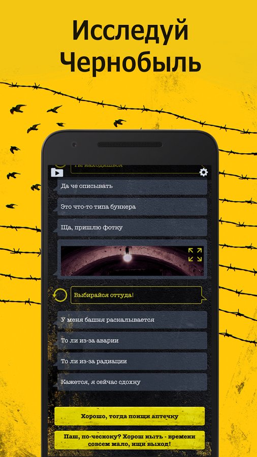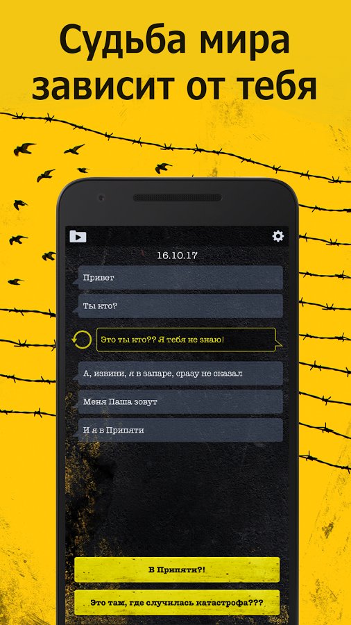 Chernobyl 2. Exclusion zone – an interactive game for Android, created by the plot of the show. In this game you will lead correspondence with the main character of the game whose name is Pasha and he is in the midst of events. Our hero was in Chernobyl and its main task will be to rescue his friends in distress. In your hands will be the fate of the hero and your decisions will depend on how things will unfold the story of the game. Challenge area and save all the heroes of the game, deciding their fate. Solve challenging puzzles, thoughtfully answer questions and escape from persecution.