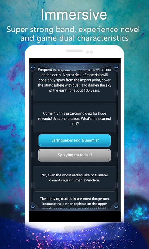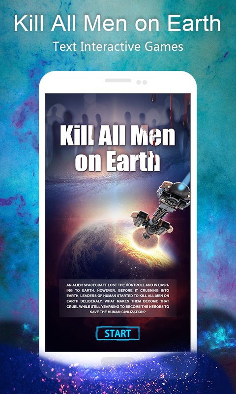 Kill All Men on Earth: Text Interactive Games – interactive game where you decide the fate of all mankind. In this game the day of the Apocalypse and now the fate of all mankind to be in your hands and you decide who will die and who will continue to live. Our planet was attacked by aliens and rendered a verdict that our planet is on the verge of extinction. All you need now is to make the right choice to help people survive or to condemn them to death. Answer questions and with each answer you will make a choice, deciding the fate of the world. The game will please you more than 40 hours of gameplay and 30 different endings, which will depend on your decisions. In this game you will be able to travel in time and go back to change the course of events.
