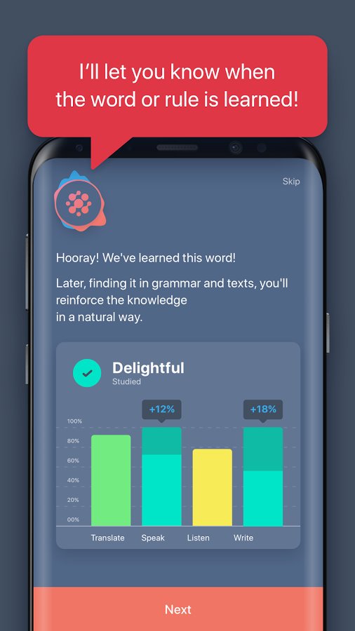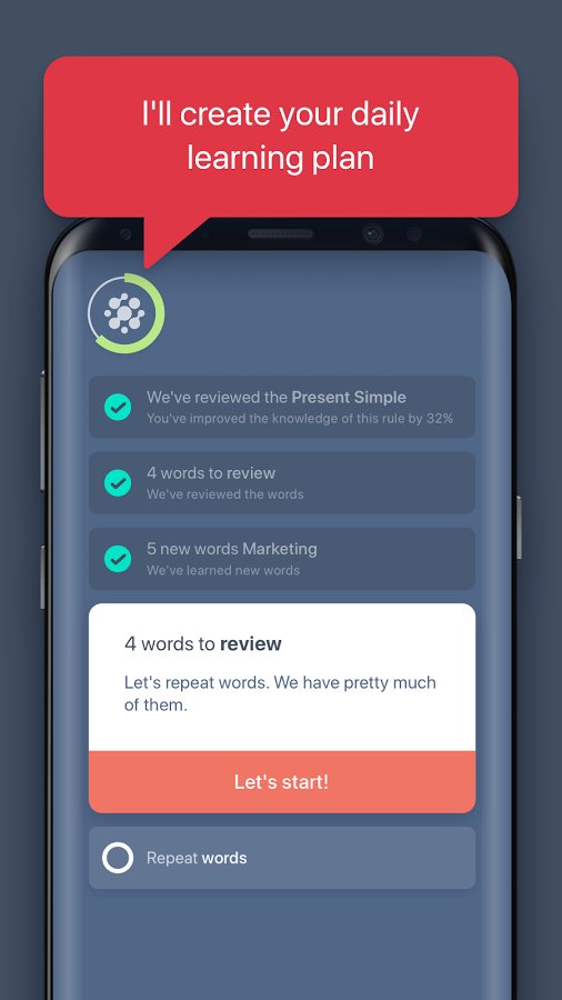 Parla: learn English with teacher AI - allows you to quickly and easily learn the English language using artificial intelligence. Now there is no need to contact Tutors and to take costly courses. The application itself reveals your level of proficiency, given gaps and errors, and builds a personalized training program. Parla immediately understand, did you learn a word, grammatical construction, rule, or need to repeat. Praise you for achievements or, on the contrary, scold for mistakes. English at different levels will be studied much more productive, because the AI will do the focusing on your gaps, e.g. in pronunciation, spelling, and will often give assignments such that the problems to be addressed. Personal assistant will be happy to help you achieve Intermediate level or Advanced level.