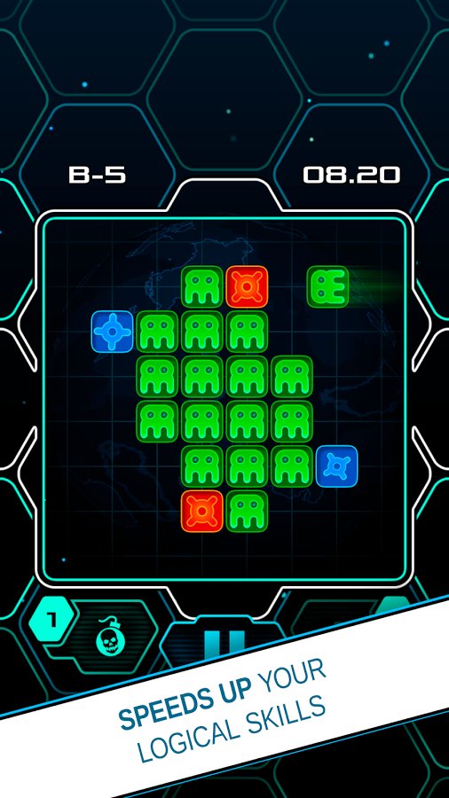 Alien Bricks - a logical puzzle and arcade – puzzle game for Android where you will be transported to the depths of space, where you will solve challenging puzzles. In this game you will see a field on which blocks your task will be to remove them. Using one finger to move the blocks on the field while consider the fact that they do not what did not interfere. Send blocks in any direction and solve complex problems, connecting their own logic and intelligence. Gradually, with each new level on the field will receive new units that have unique properties. Solve challenging levels and achieve excellent results, climbing higher in the leaderboard.