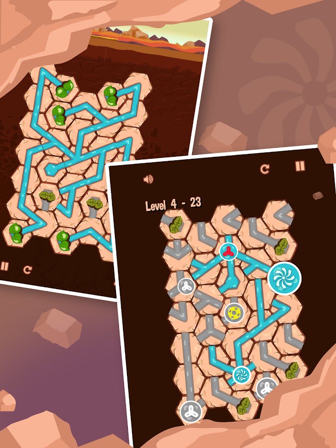 World Pipes - connect the pipes – exciting puzzle game for Android where you will play the role of a plumber. This well-known game only in the new version. In this game you will travel through various Islands, and to save all living beings from drought. Ahead of you are more than 100 exciting levels of complexity will gradually increase and added variety of objects. Collect together the pipe rotating portion of the pipe to connect it up and water the plants. The game features several difficulty modes, so this game is perfect for any age. In this game you will play with time limit or number of spins.
