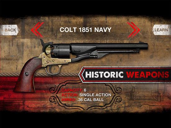 Antiques Weaphones Firearm Sim is a great simulation game for IOS where you will shoot from various weapons of the past. In this game you will find exact replicas of weapons, ranging from pistols and ending with rifles 1873 edition. You can learn how to load a weapon, you will be able to take it apart and you will also hear the unique sound of a gunshot. Play this game at any free time and enjoy great detailed graphics, realistic animation and great sound of the paddle and shots. Shoot antique arms and consider it in great detail.