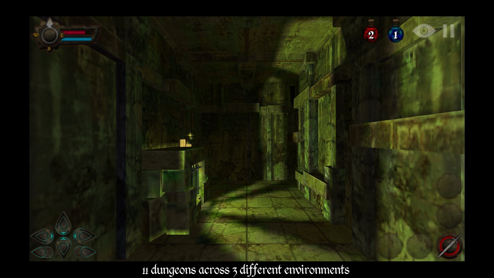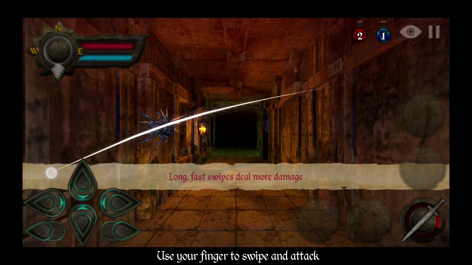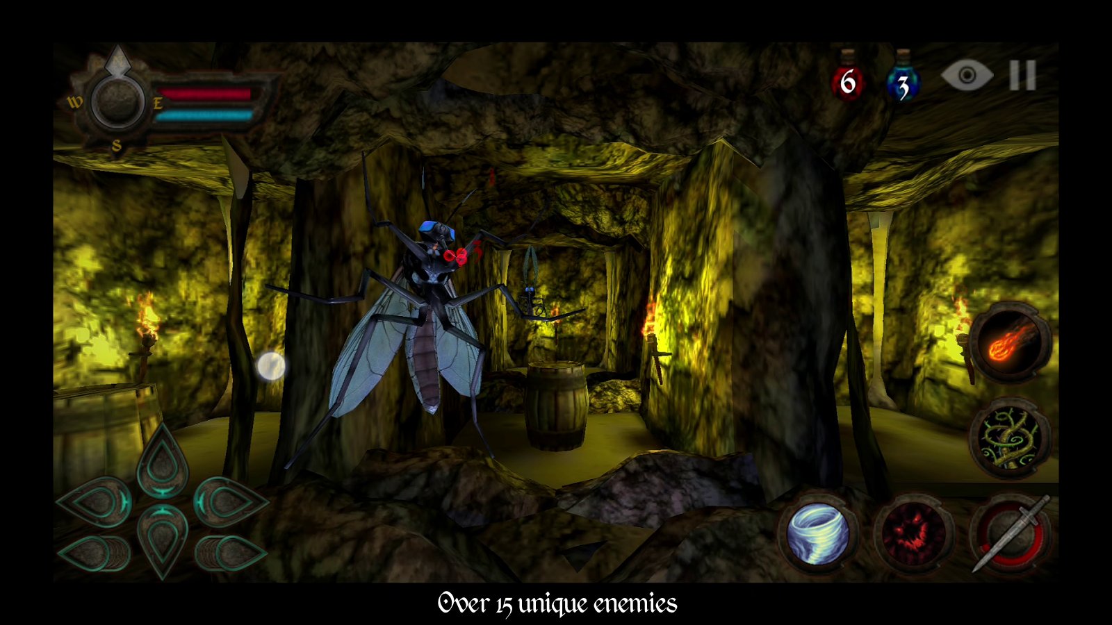 Dungeons of Rune – a game on Android where you will descend into a dark cave and try to find the treasure. In this game you will find yourself in the city s once-thriving where flocked the merchants and rich people but one day he became very expensive for ordinary people and merchants went bankrupt, and some of them went down into the cave and there he hid his gold. Years went by and now the caves are the haunt of enemies, huge spiders, bats, giant blood-sucking mosquitoes and armored skeletons. Your task is to descend into the cave and explore it to find treasures and fight monsters. Offers 11 unique caves with three different environments and mode arena. Use powerful weapons and different spells to fight enemies.