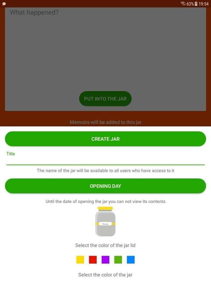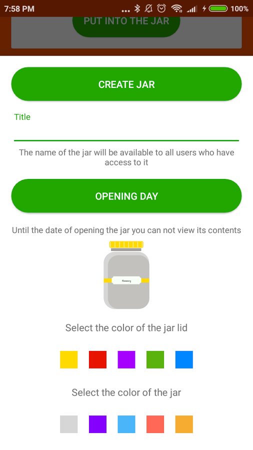 - Create the jars with the date of its opening, the possibility of its registration in various ways