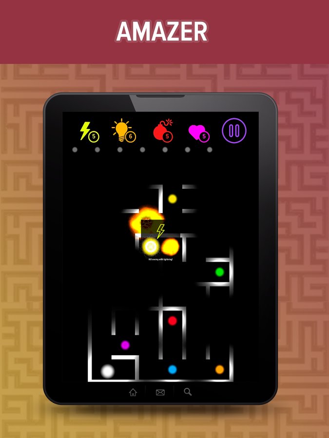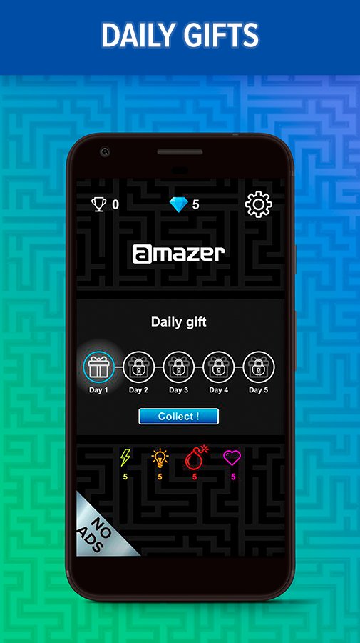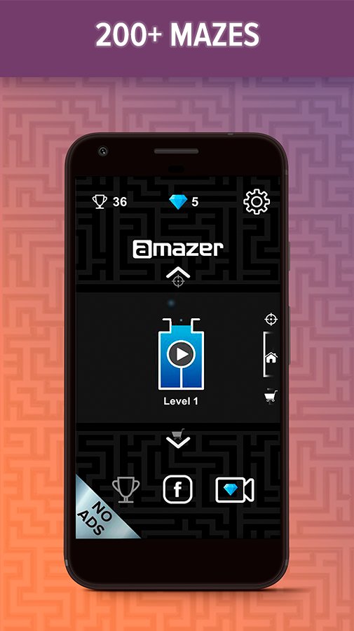 Amazer - 2d maze and labyrinth game – a fascinating game on Android, made in the likeness of the famous game pac-man. In this game your main task will be to move the ball through the maze and avoid all the obstacles on the way. Train your finger speed and good reaction to complete all tests for a minimum period of time. You need to look for in the maze of extra lives and bonuses to advance further through the maze. Ahead you will find more than 200 unique levels, multiple game modes and unique gamplay. Enjoy any free time in this game and compete with friends for best results.