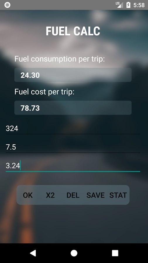 Fuel Calc will help motorists keep records of fuel consumption on the car. The program quickly calculates spent for a trip quantity of gasoline and amount of money. Besides, the application calculates the distance of the trip and is a special statistics in which conveniently displays the necessary information. Button x2 will allow the driver to monitor fuel consumption, spent on dual path back . Fuel Calc is an indispensable tool for those who loves order, and is not willing to make the extra costs.