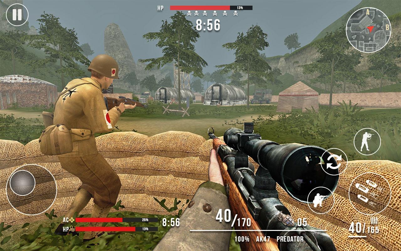 American vs Japanese Sniper - Hunter Survival FPS game on Android where you take part in the hostilities of world war II. Take control of an experienced soldier and it will hold in all locations of the game trying to destroy the enemy base. In this game you can play on the side of the Japanese or American army. Pick up your sniper rifle and complete different battle missions and destroy the enemy. Conduct aimed fire at the enemies and earn rewards. The game will delight you with a variety of weapons, ranging from rifles and ending with grenades and high-quality graphics and detailed parts.