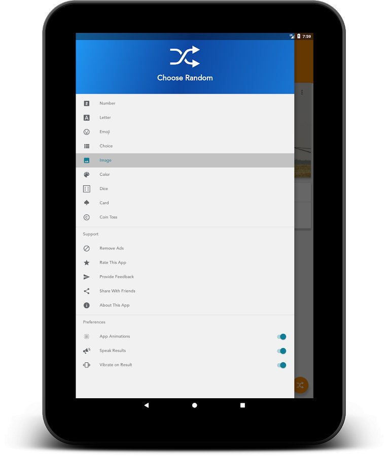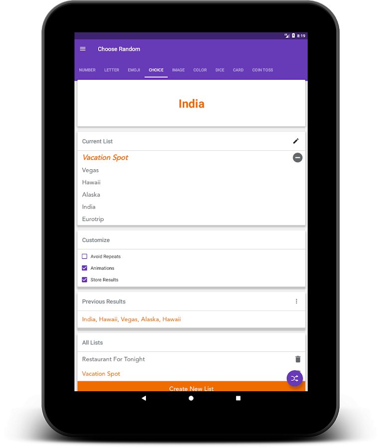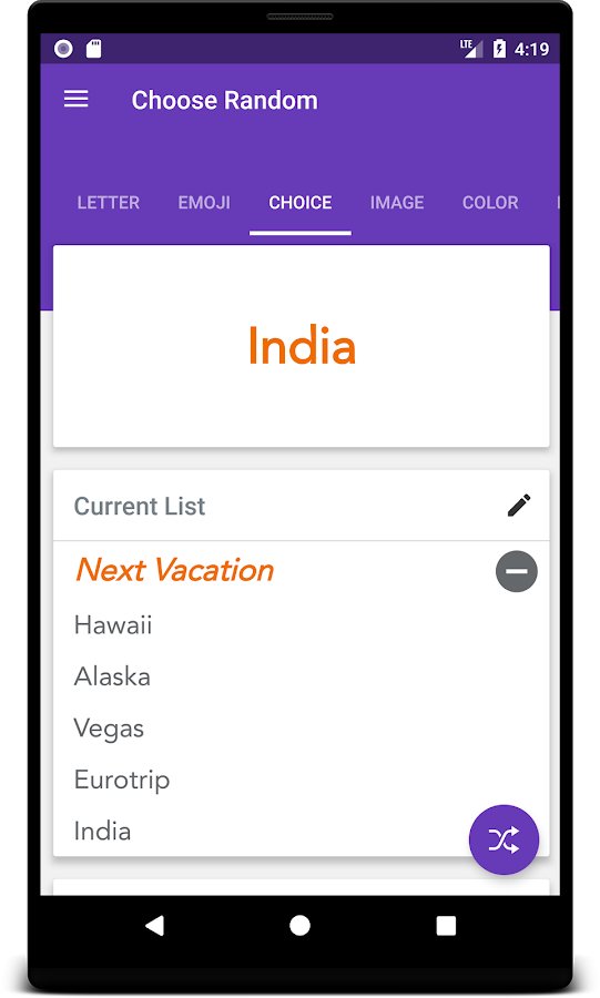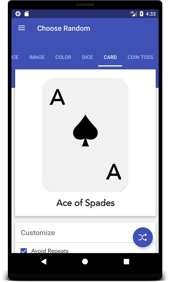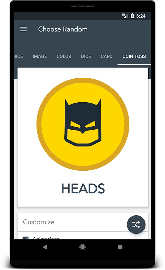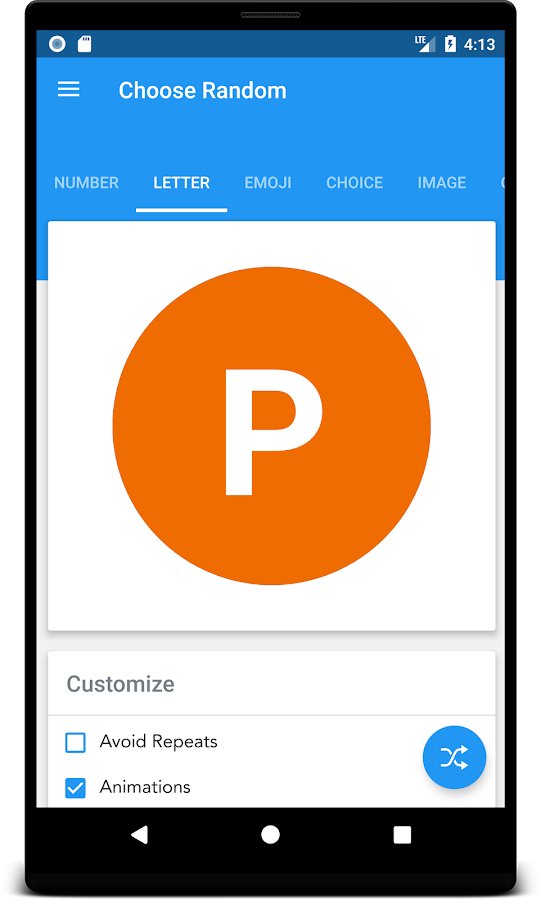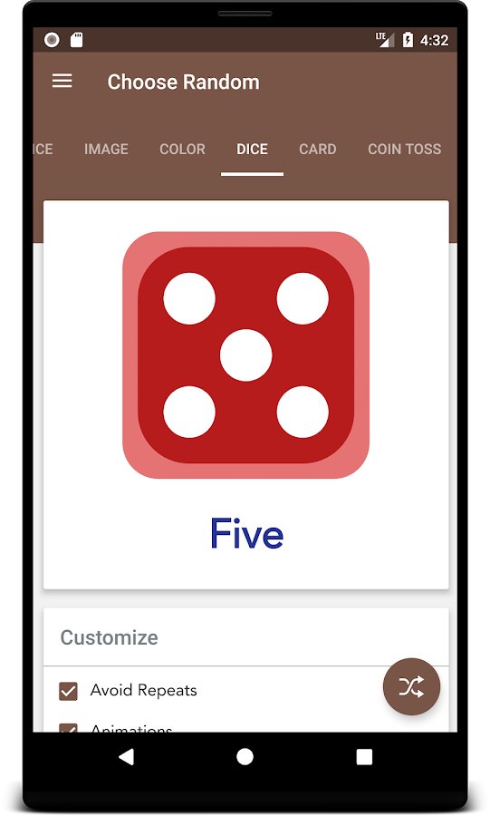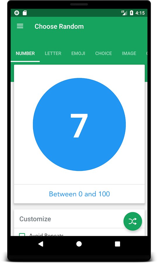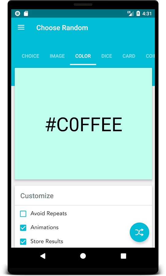 With the intuitive interface of the program Choose Random you can quickly and easily generate any set of numbers, letters, images, colors, smileys, words from a list of dice or cards from the deck, heads or tails etc. For each specified category, there is beautiful animation and a lot of effects. And functions such as saving and importing data will allow you to share the results with your friends and loved ones through various communication channels, particularly social networks. Image you can easily set as Wallpaper on your smartphone screen. The app has a responsive support, responsive to questions raised on the use.
