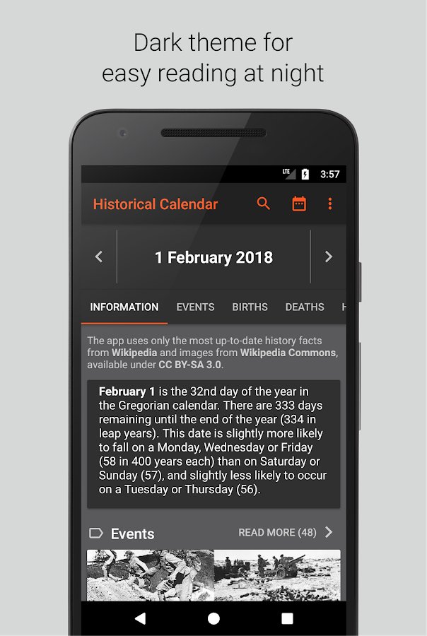 a Historical calendar will certainly appeal to people who love to enrich knowledge with new information. There is added information from Wikipedia, taking into account your chosen language and cultural environment. You will be able to learn about the holidays celebrated on this day, important historical dates, cultural events and rituals of different peoples of the world. Use only the latest facts from Wikipedia.