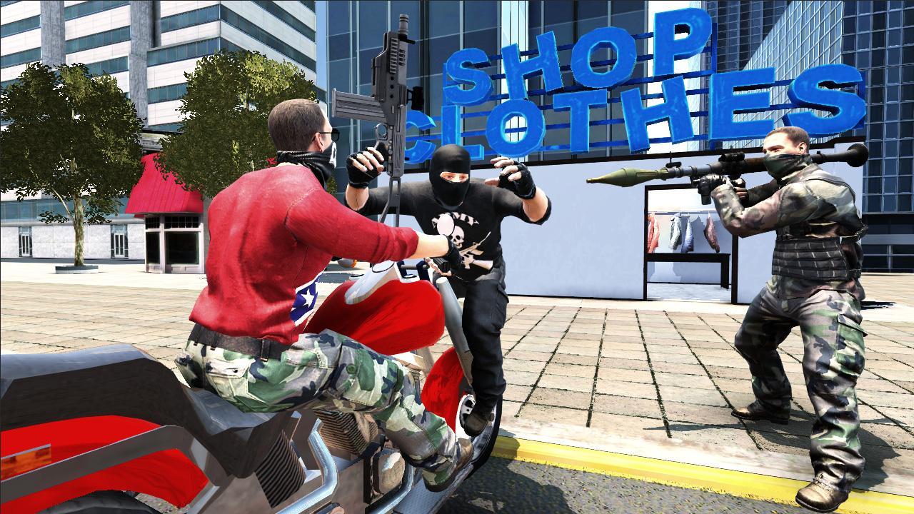 Grand Action Simulator - New York Car Gang – a fascinating simulator for Android where you control a gangster in crime city. In this game you find yourself in new York and will explore the city, riding a motorcycle or racing car. Travel different parts of the city, make stops to dress up your hero, equip him with weapons, or Rob a Bank. Take part in a firefight with numerous enemies and the mafia from different countries and achieve excellent results. Complete missions and tasks and form his criminal gang.