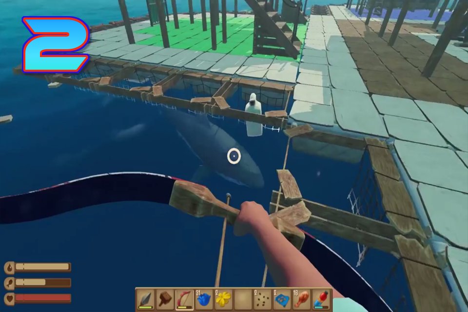 The RAFT 2 - Sea Survival adventure game where you will survive in extreme conditions. In this game you will find yourself in the middle of the ocean alone on a small raft, your ship crashed and you are the only survivor in the crash. Your main task will be to survive and collect as many useful resources as well as items to extend the raft. Explore the ocean and explore the numerous Islands, completing various missions and tasks. Be extremely cautious and careful in order not to fall into the jaws of a huge shark that will haunt you throughout the way. Using the hook pull out of the water the leaves, barrels, logs and other items necessary for the construction of the raft.