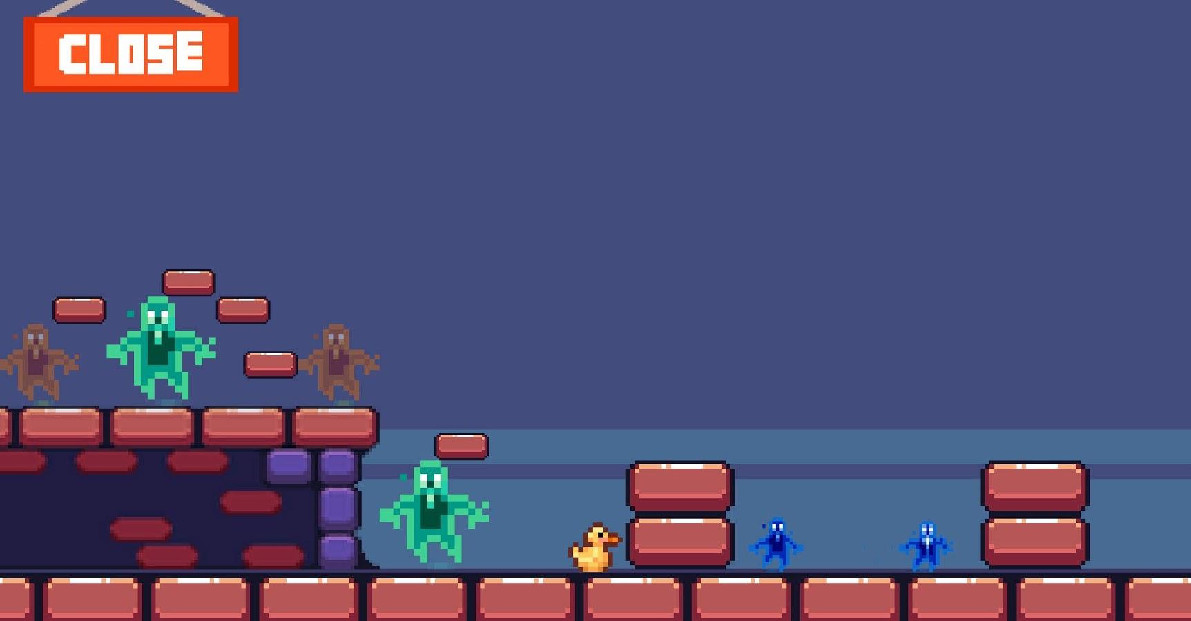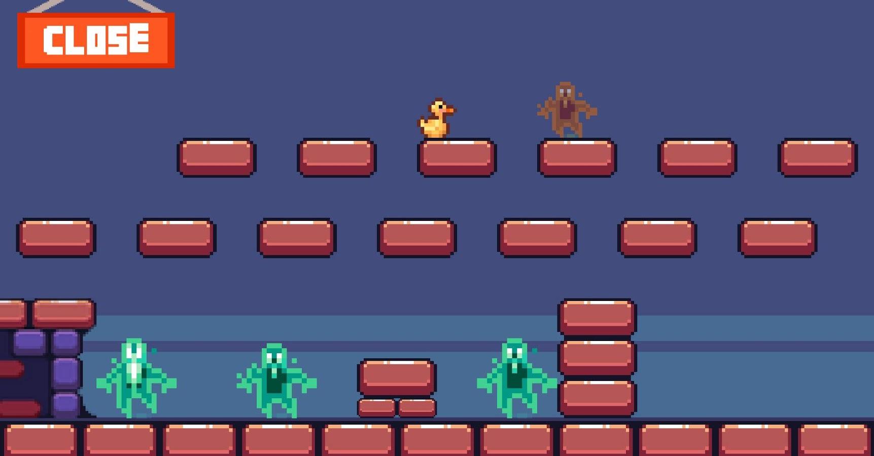 Jumping Duck island arcade game – a fun action game for Android inspired by old retro games. The main character in this game is the duck-jumper who travels in a dangerous world and avoids meeting with the enemies. Tap the screen of your phone or tablet and make the duck move forward, while avoiding the dangers, which are divided into several types. On your way you will encounter green ghosts – they are static and not moving, the orange ghosts appear and disappear, the blue ghosts are the most dangerous – they move on all levels, and also bats, which also should be avoided.