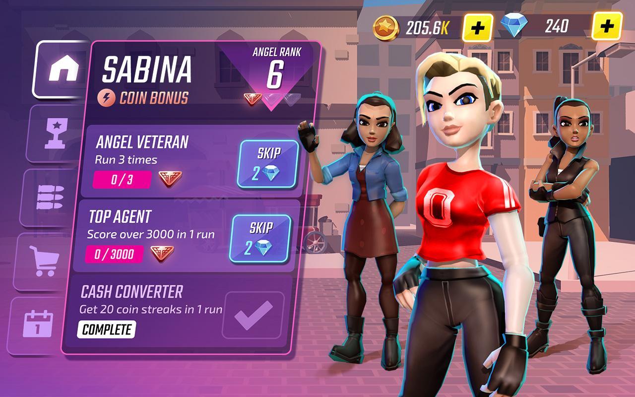 Charlie s Angels: The Game – control a female team of agents-spies and save the world from impending threats. Choose a character from prepositional girls in the game and travel around the city, filled with enemies and villains. Run forward and go through many obstacles in their way, performing stunts and dodging bullets. By the way don t forget to collect coins and destroy the criminals to get bonuses. Waste collected coins and gems to unlock special skills. Rely on your finger dexterity, good reaction and intelligence.