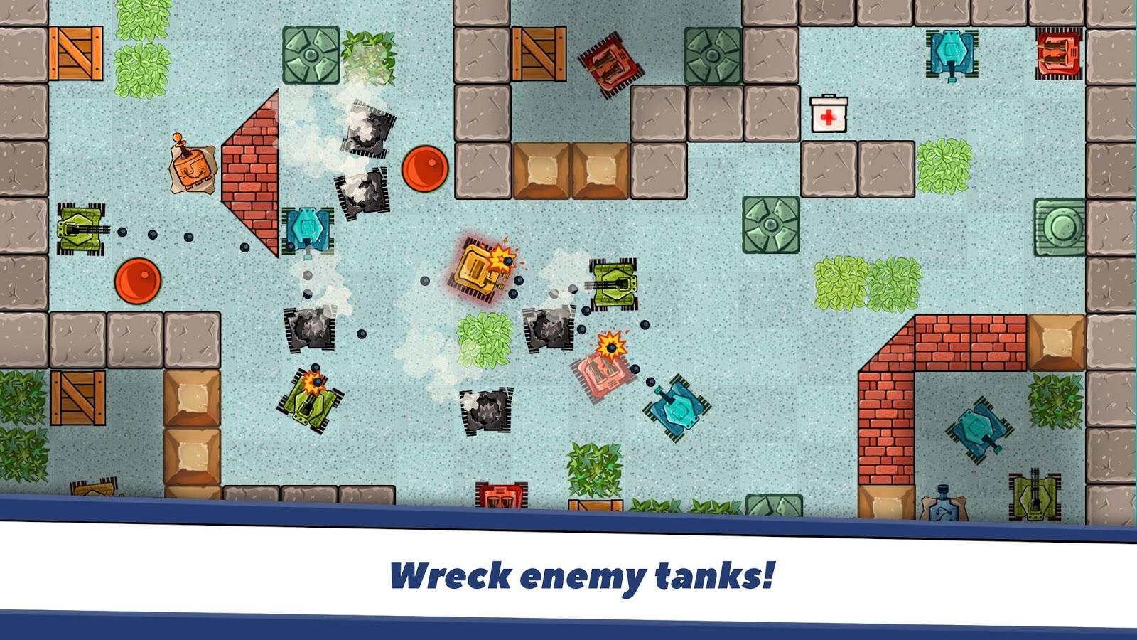 Awesome Tanks – a fascinating shooter for Android, where you take part in tank battles. In this fantasy world you will be transported to the battlefield where you would have to develop a strategy of warfare to destroy all enemy tanks. Perform numerous missions and combat missions and set your own records in the game. Use bonuses and power-UPS to turn the tide of battle in your favor. Level up and upgrade your tank after each successful battle and get rewards, coins and ranks. Engage in developing their own levels and share them with your friends.