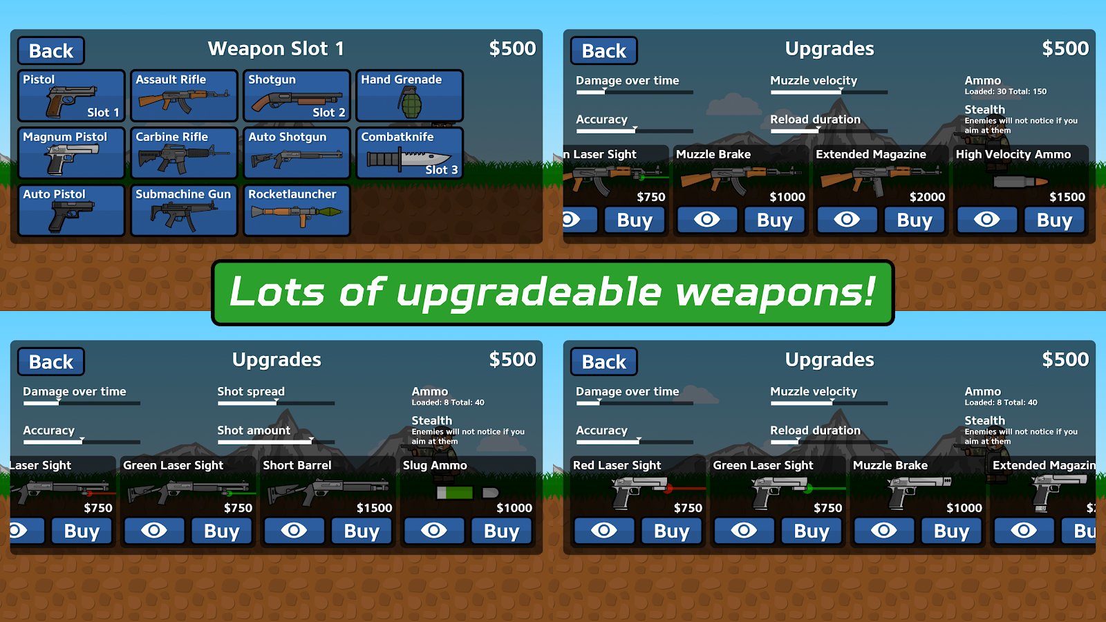 Wargunners: Online 2D Shooter – third-person shooter for Android, in which you can play with your friends. This game has several game modes where you can participate in a single battle against bots or challenge real players to play up to seven players simultaneously. Manage your hero and guide him through many battles trying to hold out as long as possible in the game. Earn credit, buy up to 8 types of weapon and upgrade it as the game progresses. Compete with players from all over the world and prove to everyone that you re the best player.