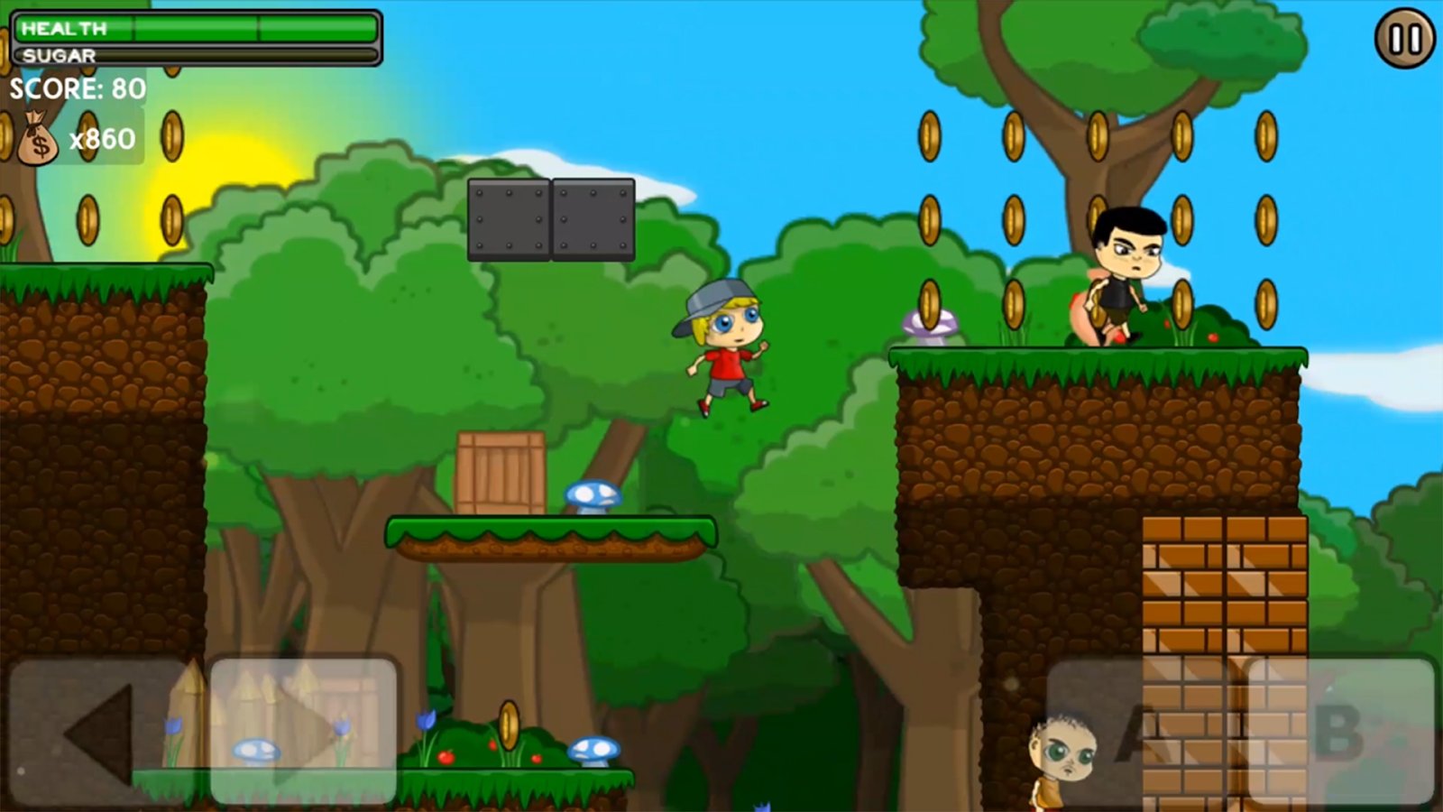 Dean The Kid: Action-Platformer – 2D platformer for Android, with side scrolling. In this game you will play the role of a boy, Dean who must travel across a dangerous world to rescue a damsel in distress. Complete over 50 unique levels of the game and perform numerous quests and tasks. Travel through five different worlds and enjoy new platforms and interesting game mechanisms. Join the battle with numerous bosses and upgrade your hero with the help of collectible items. Collect all the candy along the way and increase your sugars to fill the sugar level and will travel on diabetes Strait. Break the treasure chests and collect gems.