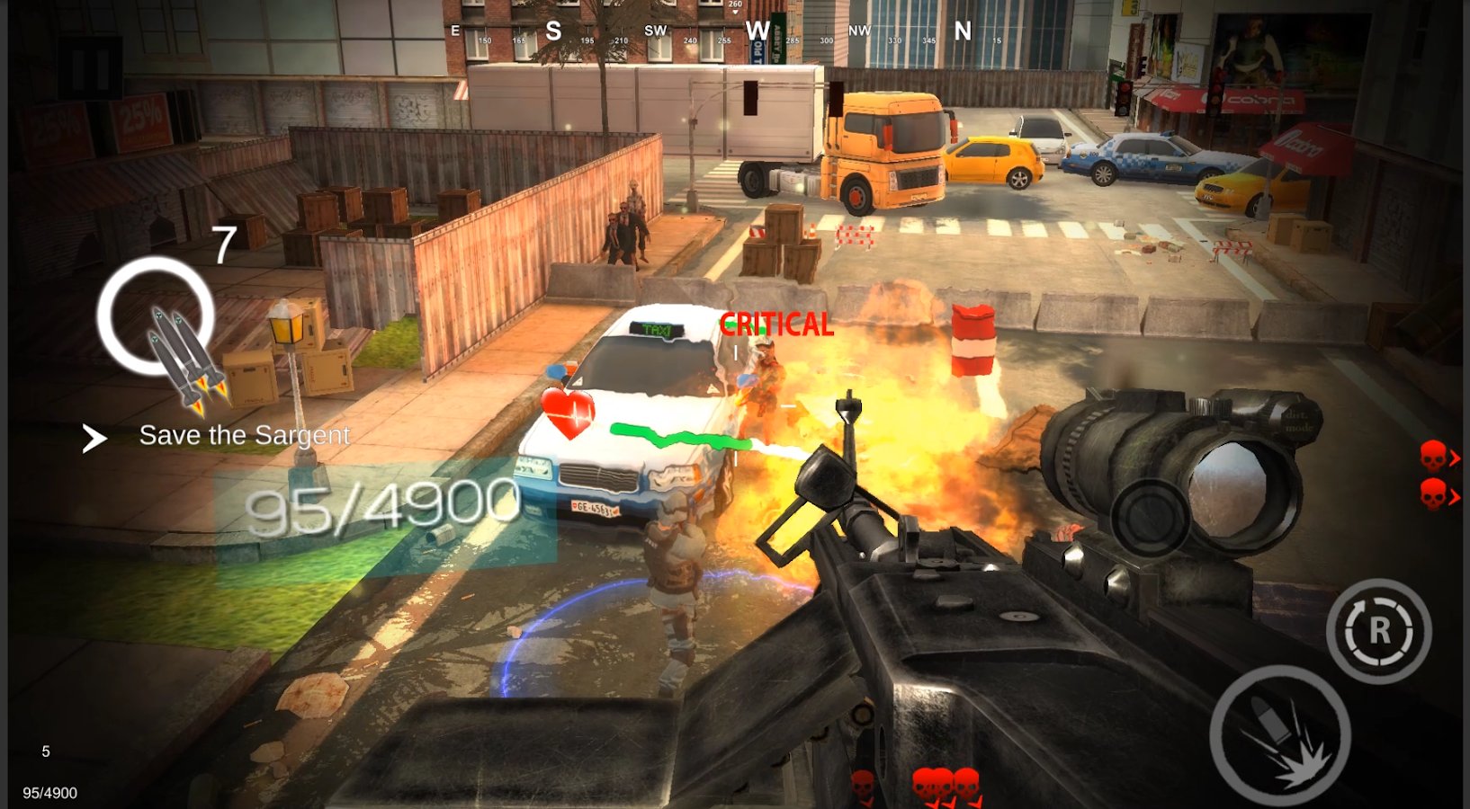 Zombie Shooter Dead Terror – a fierce and unique zombie shooter for Android where you will save the city from zombie attacks. In this game you will be transported to the year 2065 where the expected century experiment has failed and people began to turn into a zombie. This led to the fact that the city has undergone a zombie Apocalypse. In order to save humanity from destruction was assembled by the anti-terrorist squad to rescue the few survivors. Now you are responsible for the survival of the people and the team who fights in the thick of things. Manage your team and enter the battle against the army of zombies. Upgrade and improve your weapons during the game and not let the zombies get close to you. Test your shooting skills and survive in this exciting game.