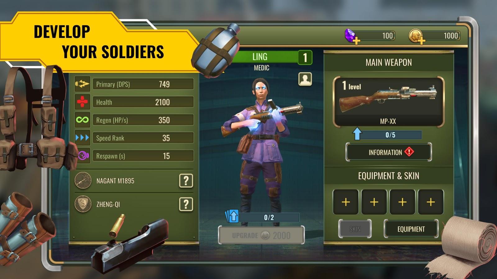 Diesel Soldiers: World War - the Second world war ended in 1945 and armed conflicts in different countries lasts to this day. USSR, Germany, USA, Japan and China got involved in the race structures, to finally end the war. You will lead a team, upgrade weapons, skills and clothing of soldiers. Test in a battle new of the unique capabilities of tanks, modified with the help of Tesla installations. Also as protection, use armored suits with exoskeletons and protective dome.