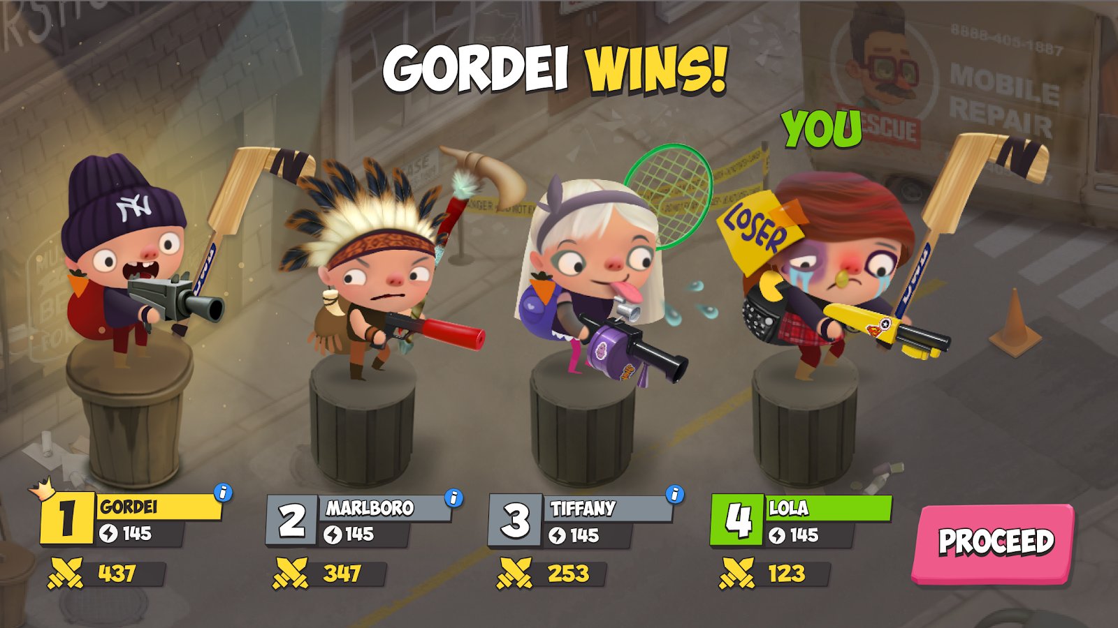 Kids VS Zombies – multiplayer game where you fight against zombies. Exterminate the living dead and get rewarded with donuts. Make nasty to other players and have fun. All the adults were attacked by a dangerous virus, and only the children remained unharmed. Arrange podlyanki and substitute under blow of other gamers, sly and protect yourself. Buy weapons and upgrade your skills, create your own fighting style and boldly go forward. Play in real time with 4 random players collect unique sets and a complete outfit to take the lead.