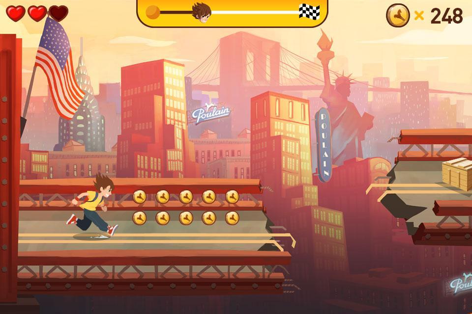 La choco aventure par Poulain - Arcade runner for Android, which is made in the style platforming. The game s plot revolves around the Golden beans, which was stolen. Along with the little hero, you will try to find them. For this examine six major cities across the Earth. In each of the cities he will find them one by one until you find them all. This whole mission revolves around chocolate, which produces Poulin.