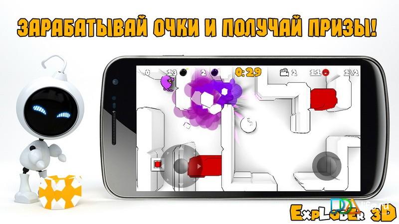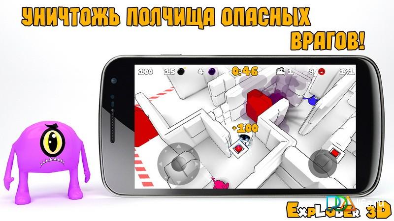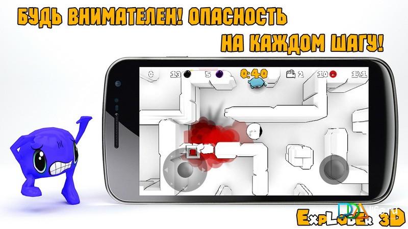 Exploder 3D – great labyrinth arcade puzzle game for Android. Immerse yourself in a world of infinite mazes which are fraught with a large number of dangerous traps and treacherous enemies. The goal is finding the shortest path to exit the maze. In the maze of the many you will encounter dangerous monsters, that and strive to make your life harder. In each maze there are traps blocking the path from the exit, go around them or use bombs, the number of which is restricted in the game. Time also plays against you, so don t hesitate, otherwise you ll have to start the level over again. The game integrates with Google + profile, so feel free to compete with your friends for better results. Great game with good graphics, great music and unique gameplay.