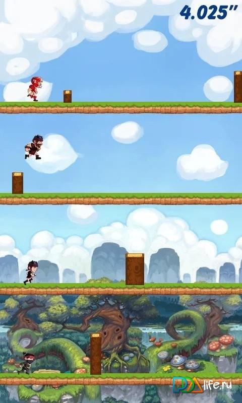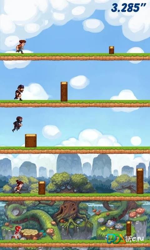 Ни один не умрет - Nobody Dies - Веселая, но в тоже время простая, аркада на андроид, которая выполнена в стиле раннера. Но это не всем привычный раннер. Тут вы будите управлять не одним, а несколькими героями. При этом каждый из них не должен врезаться в бревно. В игре несколько уровней сложности, которые отличаются лишь количеством одновременно бегущими героями.