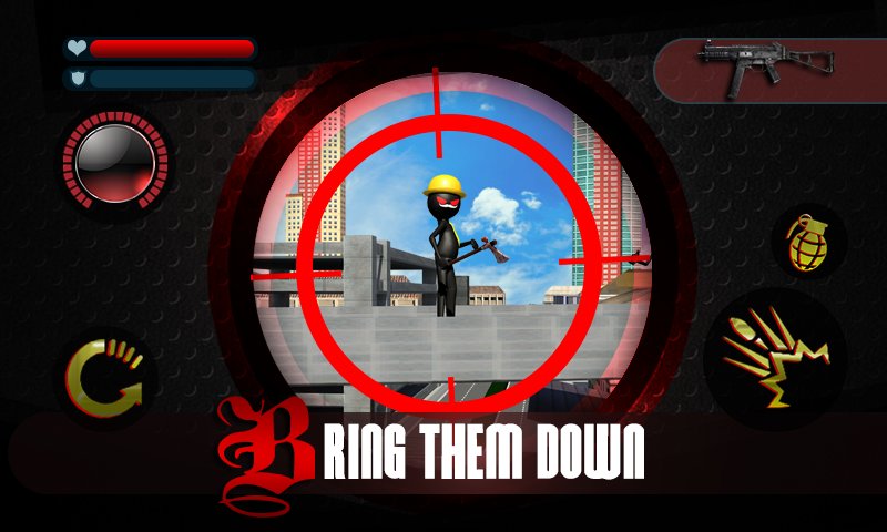 Stickman Shooter 3D - Стикмен набрал уже невиданной популярности в мобильных игр. Он выполнял уже наверно все что приходило в голову разработчикам. Теперь на очереди шуттер от первого лица. Кроме того, эта игра получила трехмерную графику с черным оформлением стикменов. В вашем арсенале будет винтовка с оптическим прицелом для успешного ведения боя.