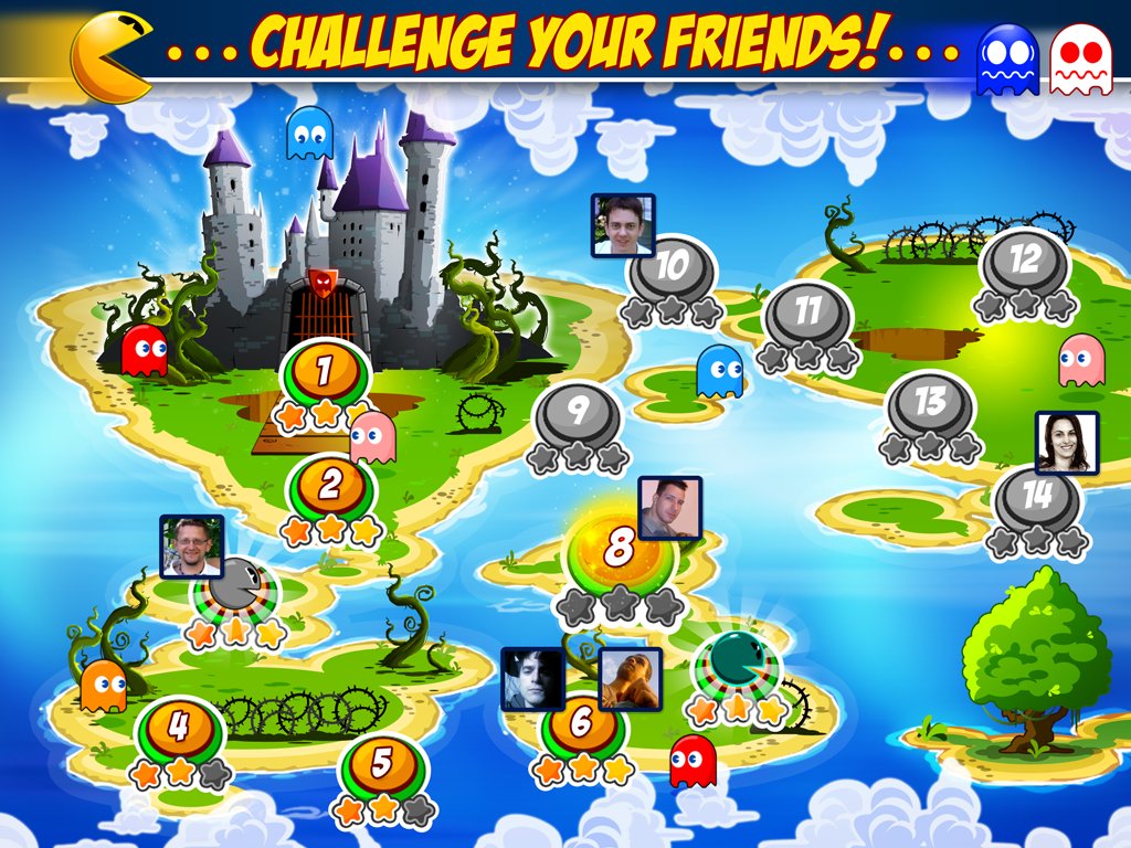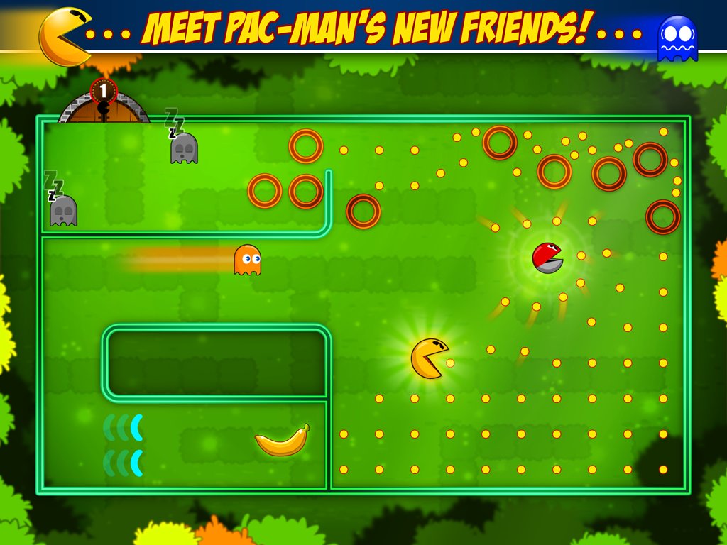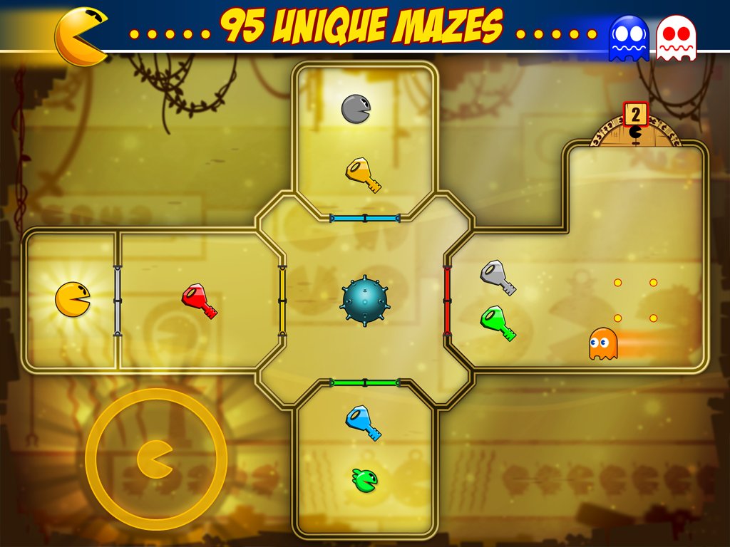 PAC-MAN Friends - новая игра с быстрым темпом, в главной роли которой выступает классический персонаж pac-man. Вашей задачей в этой игре будет пройти все запутанные лабиринты замка и освободить своих друзей из заточения. На своем пути собирайте бонусы и пожирайте фрукты, которые помогут вам преодолеть препятствия. Каждый освобожденный вами друг имеет свои уникальные способности, которые пригодятся вам в дальнейшем.